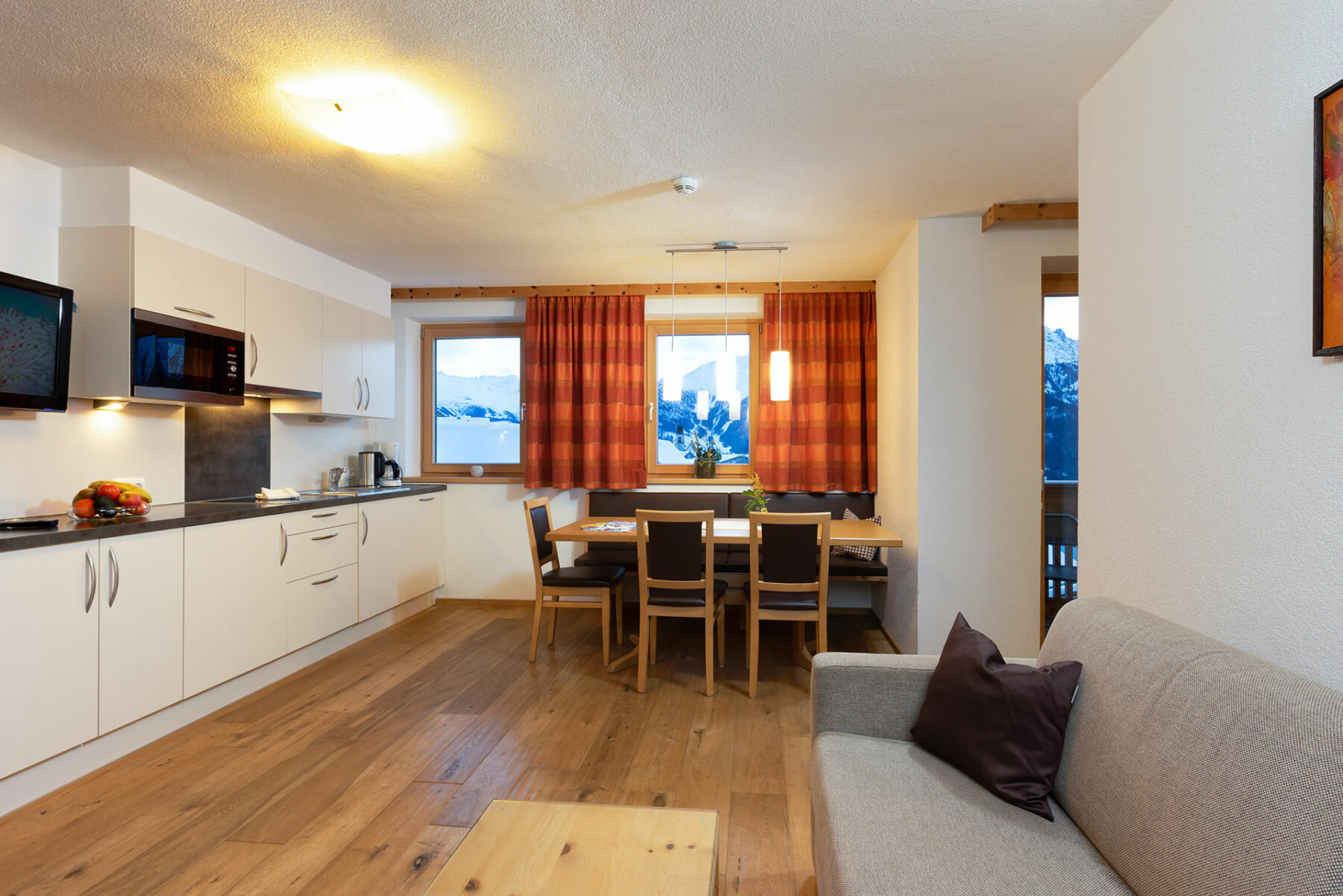 1 Wohnraum mit Küche (25 qm), Parkettboden